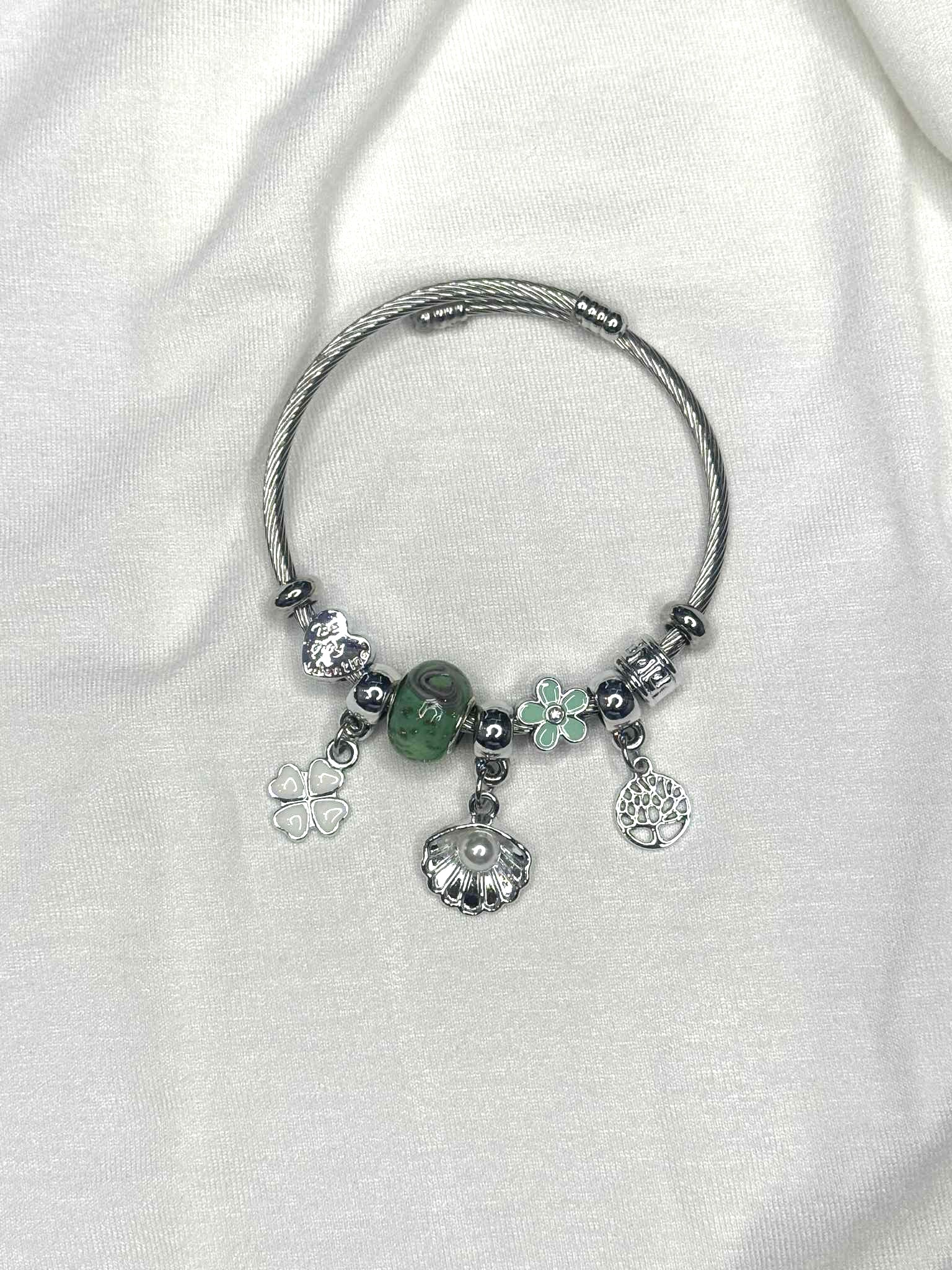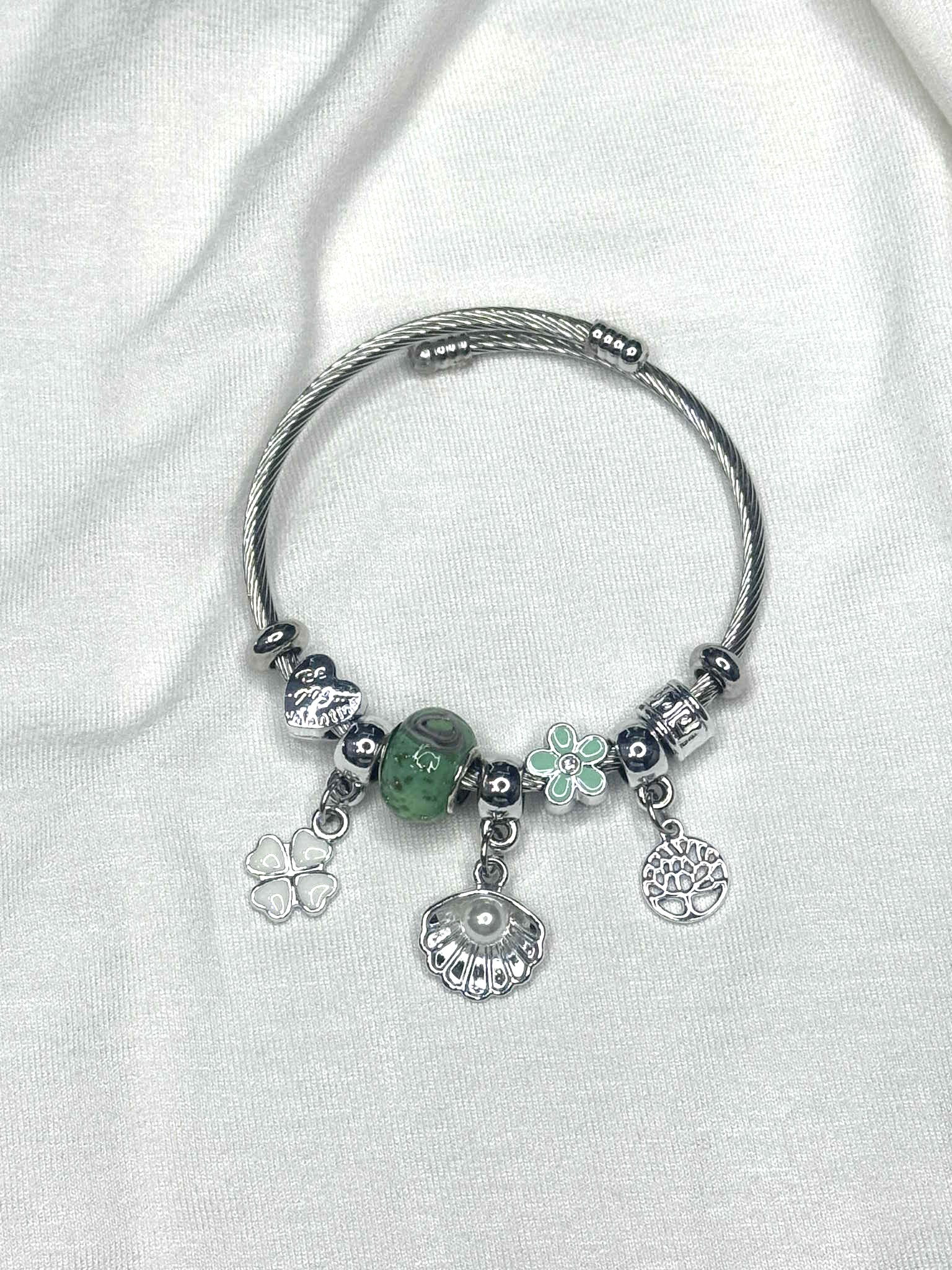 Ανακαλύψτε την ομορφιά του γυναικείου βραχιολιού, που συνδυάζει κομψότητα και ρομαντισμό. Αυτό το βραχιόλι διαθέτει ένα μοναδικό σχέδιο σε μορφή κοχυλι χρωμα πρασινο/λευκο, ιδανικό για κάθε γυναίκα που επιθυμεί να προσθέσει μία ρομαντική νότα στην εμφάνισή της.