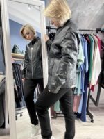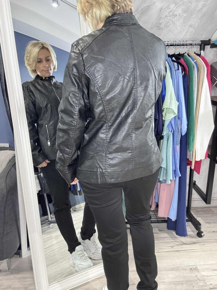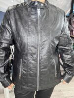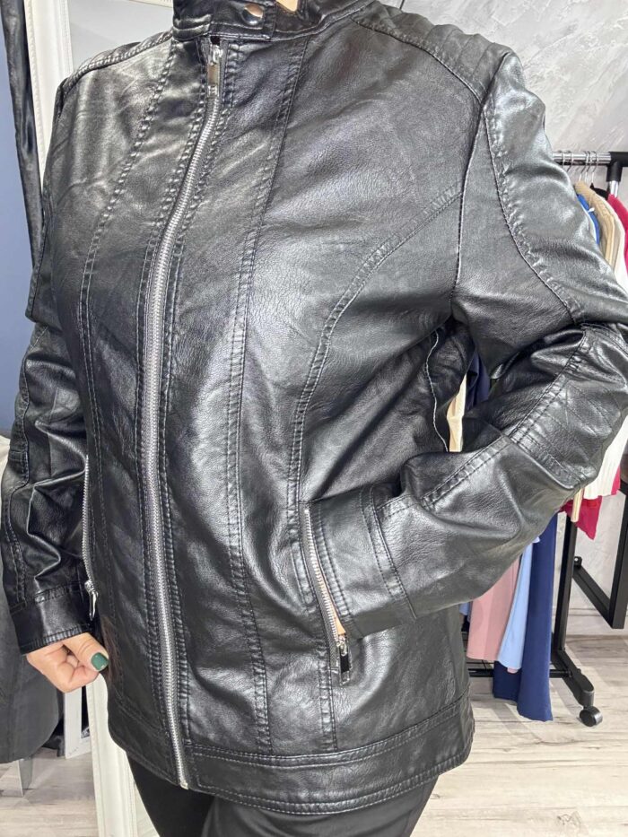 Γυναικείο biker jacket σε κανονική γραμμή, διαθέτει πλαϊνές τσέπες και κλείνει με φερμουάρ. (Σύνθεση: 100% Οικολογικό Δέρμα & 100% Βισκόζη) Plus Size μεχρι 54 νουμερα