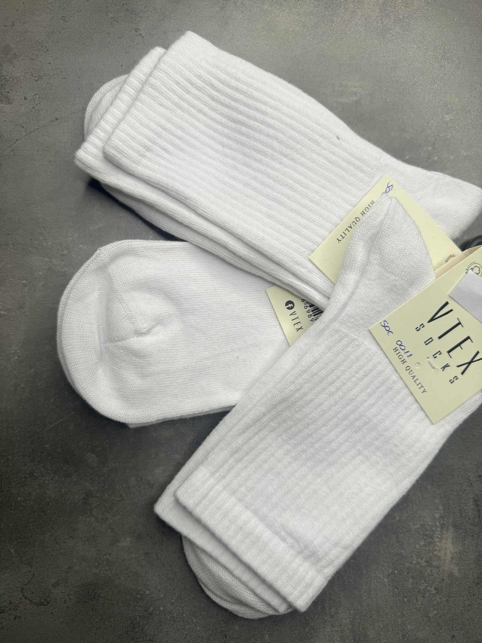 Γυναικειες καλτσες ψηλες σε λευκο χρωμα. Συνθεση 85% βαμβακι, 10% πολυεστερας, 5% ελαστανη.