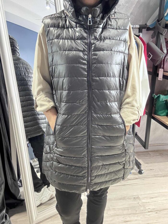 Το γυναικείο αμάνικο μπουφάν προσφέρει άνεση και ευελιξία, ιδανικό για τις κρύες μέρες του χειμώνα. Το μάκρος του παρέχει πρόσθετη κάλυψη και προστασία από το κρύο, ενώ το αμάνικο σχέδιο επιτρέπει ελευθερία κινήσεων και συνδυάζεται εύκολα με πουλόβερ ή ζακέτες.