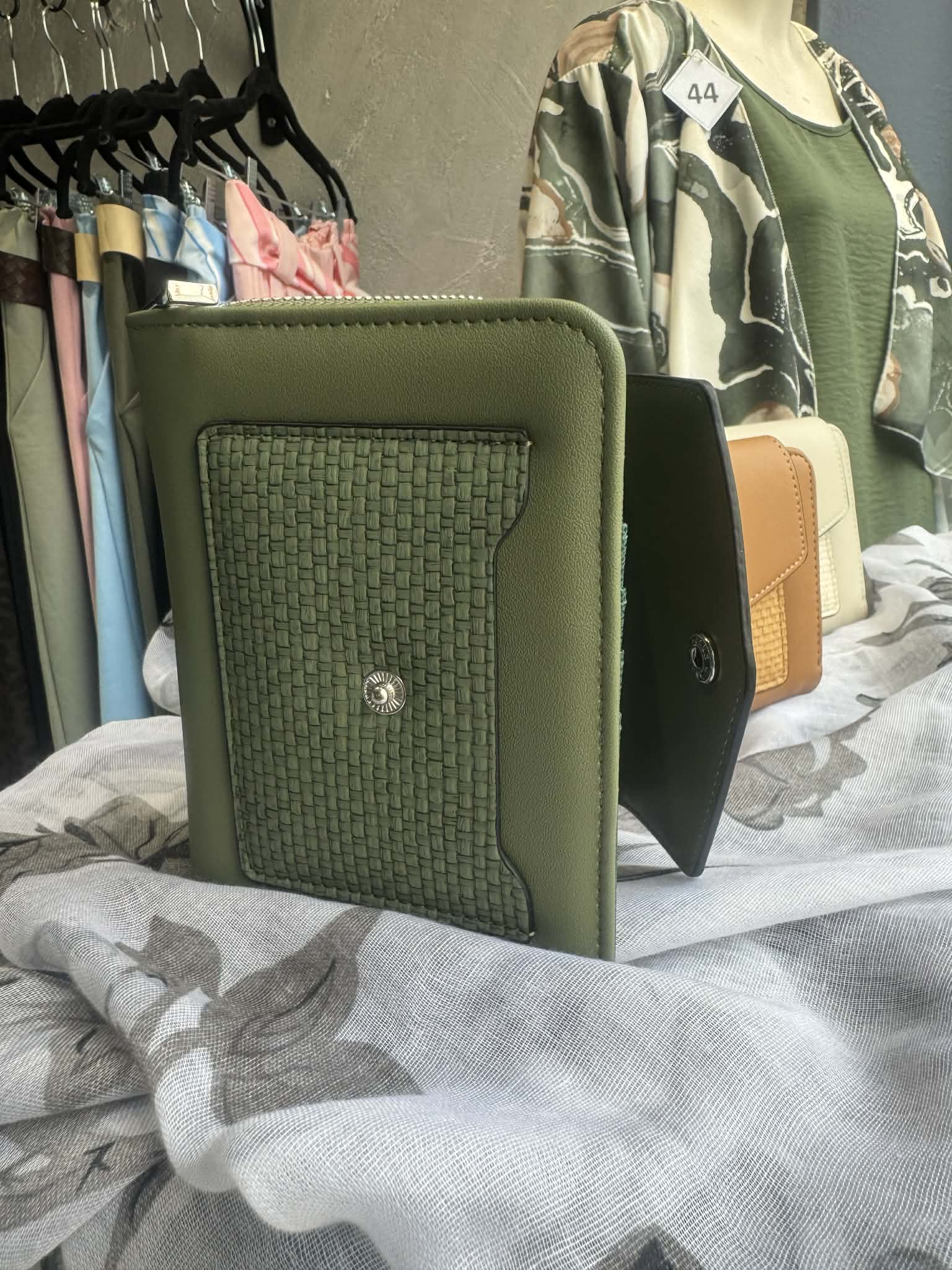Μεσαιο Δερμάτινο Γυναικείο Πορτοφόλι με κουμπι και φερμουαρ.