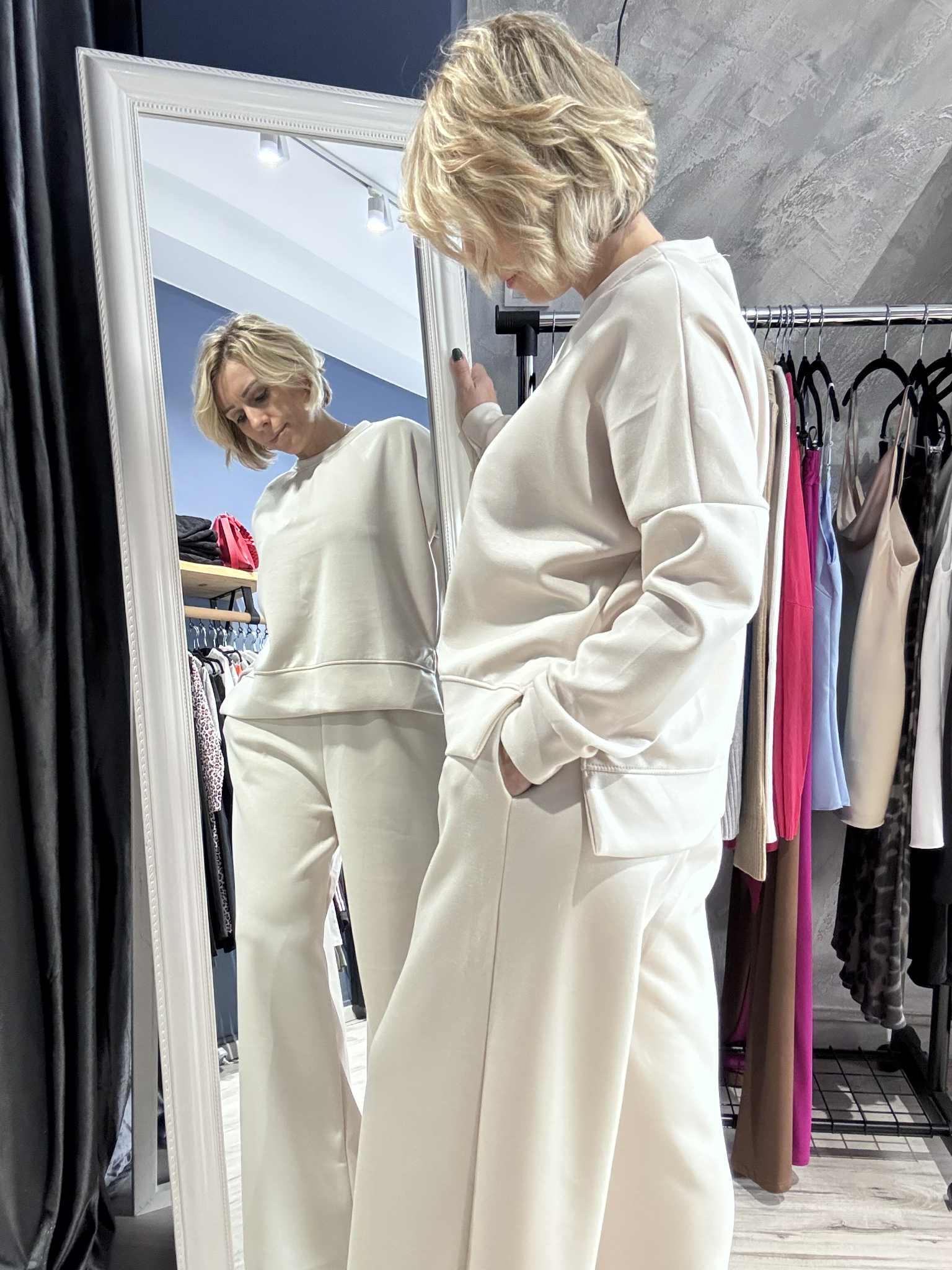 Παντελόνι διαθέτει λάστιχο πάνω στη μέση.